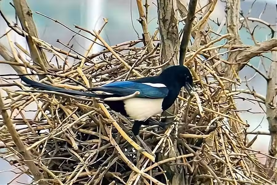 喜鵲不怕風雪全靠看似「雜亂的巢」?外部粗糙簡陋,內部卻「別有洞天」!