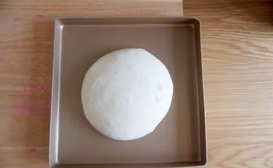 「6」分成2個等份,並依次將兩個面團滾圓後放進發酵箱中鬆弛15分鐘;