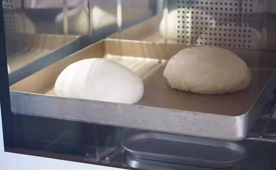 「7」15分鐘後取出面團排氣後,搟成方形片狀;