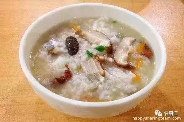 原料:大米半杯、 香菇2朵、雞胸肉半塊 玉米粒適量、胡蘿蔔1小塊、 鹽1小匙