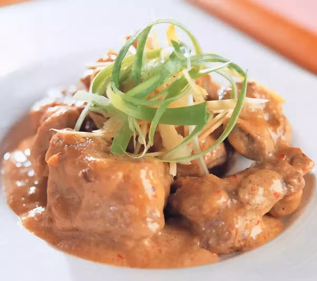 3 至湯汁濃稠後即可取出排骨,配上嫩薑絲、蔥絲趁熱食用。