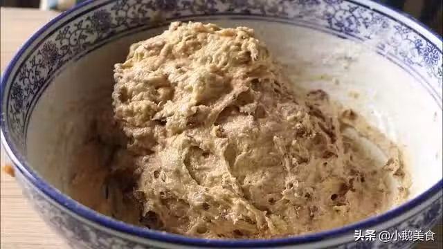 5、蓋上保鮮膜放溫暖處發酵至2倍大,我一般都是燒一鍋摸著有點微燙的熱水,關火之後,把面盆放蒸屜上,上面再蓋上鍋蓋。這樣發酵起來大概1小時左右就可以了,發好的標誌是體積變大,有拉絲。夏天很熱時是室溫發酵。