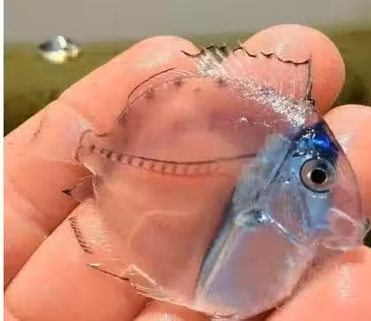 一男子在海上捕魚,無意間竟捕捉到了這一條奇特的魚。它全身透明,非常的小巧可愛。男子當時以為這條魚可能是新物種,於是拍了很多照片。