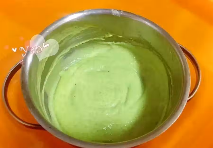 混合好的牛奶蛋黃糊過篩,然後再倒入鍋內,繼續用小火加熱至變得粘稠關火,快速放入冷水中降溫
