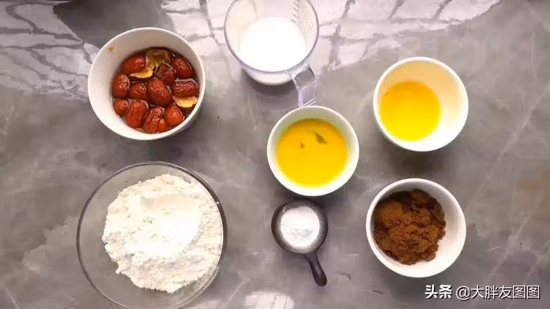 紅棗提前泡軟去核,加入牛奶在破壁機中打成紅棗牛奶備用。沒有破壁機,可以把紅棗撕碎,再和牛奶混合。