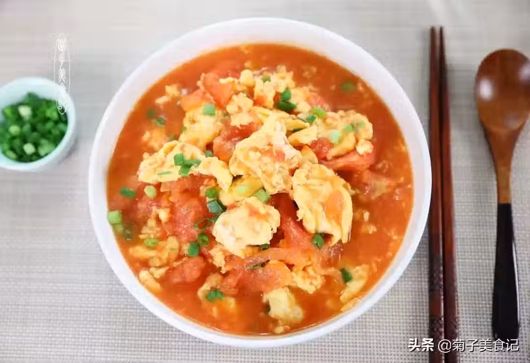 第一步:準備食材調料,西紅柿 2個 / 雞蛋 3個 / 蔥花 10克 / 鹽 適量 / 細砂糖 一茶勺 / 食用油 30毫升