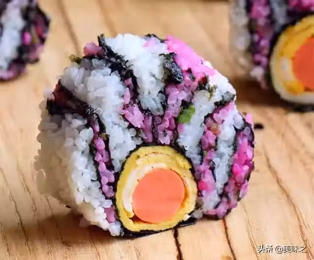 米飯1大碗、雞蛋1個、火腿腸1根、莧菜1小把、壽司醋適量、香油適量、鹽少許、海苔1包。