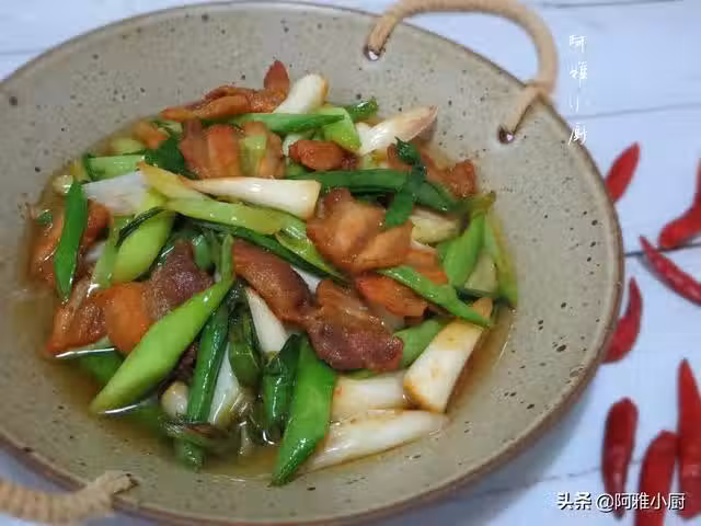 3.下入蒜苗,翻炒均勻,翻炒均勻之後加入適量生抽提鮮,炒至蒜苗變蔫,加鹽炒勻就可以出鍋啦。