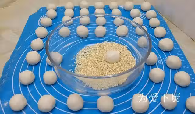 取出小糰子,放手心揉一揉,芝麻不會掉落。