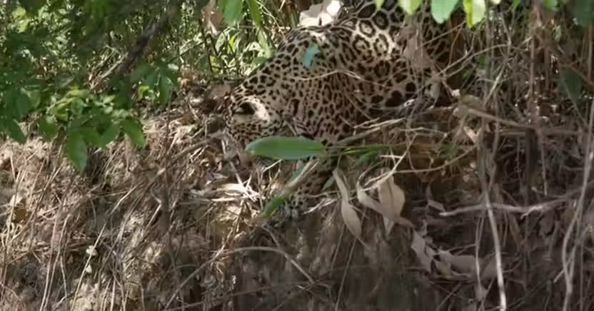 美洲豹下水獵殺鱷魚,一擊致命,鱷魚毫無還手之力_刀疤_公豹_母豹