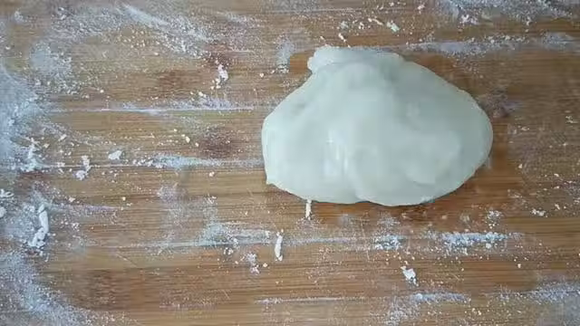 18、面板上撒些提前炒熟的糯米粉,再放上糯米團