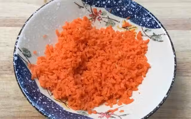 4、再準備一個碗,打入一顆雞蛋,用筷子打撒,鍋燒熱放少許油,放入打撒的雞蛋液,煎成雞蛋碎盛出備用。