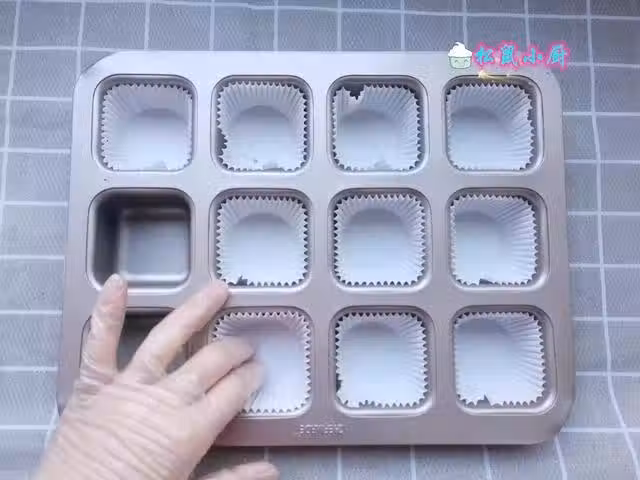 7、將蛋糕糊裝入一次性裱花袋中,更方便擠入模具,用勺子會弄得模具上到處都是蛋糕糊,很難清理。這種裱花袋不是只有做裱花蛋糕才要用到,平時裝蛋糕糊啥的都很方便,可以多備一些。