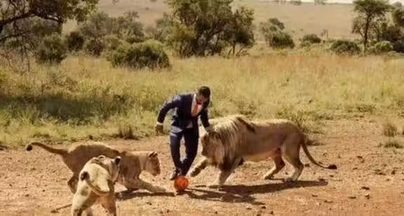甩著尾巴衝著兩隻獅子汪汪大叫,讓人感到奇怪的是,這兩隻獅子竟然沒有將這隻狗狗給咬死,反而眼睜睜地望著它離開了。其實家養的狗子來到野外生存的話,還真不一定就鬥不過這些野生動物。