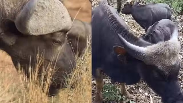 世界最兇猛2種野牛,非洲水牛和印度野牛,它們打起來誰更厲害?_成年_牛角_頭部