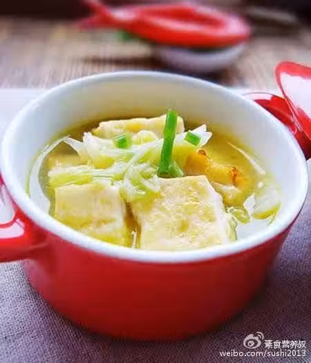 原料:白菜1/3棵(約500g)、老豆腐1塊(約300g)、姜少許、菜籽油3湯匙、鹽適量、蘑菇精少許、胡椒粉少許