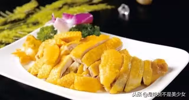 3、用旺火燒熱炒鑊,下粗鹽炒至高溫,取出1/4放入沙鑊,把雞放在沙鑊內,將餘下的鹽覆蓋在雞上,蓋嚴鑊蓋,用小火焗約20分鐘至熟。把雞取出,揭去紗紙,剝下雞皮(待用),將雞肉撕成塊,雞骨拆散,加入味汁拌勻,然後裝盤(骨在底下,肉在中間,皮蓋在上面),拼擺成雞的形狀,香菜放在雞的兩邊即成。