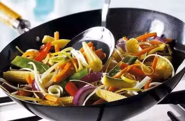 21、炒菜時應先把鍋燒熱,再倒入食油,然後再放菜。