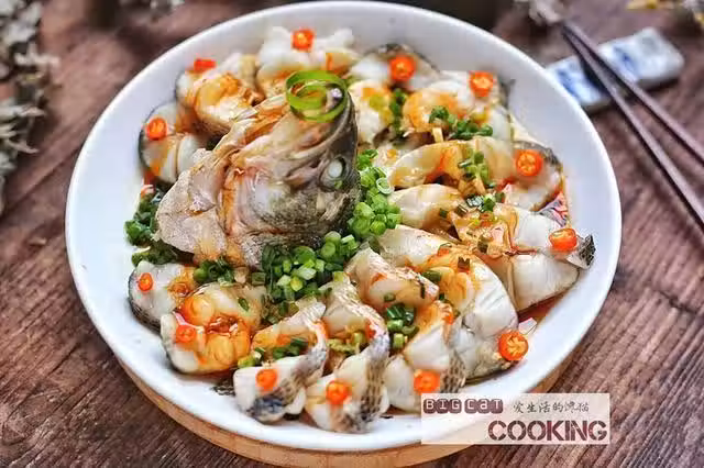食材:鱸魚1條,蔥花1根,辣椒2根,蒸魚豉油3勺,花生油2勺,料酒2勺,薑片5片,鹽2克