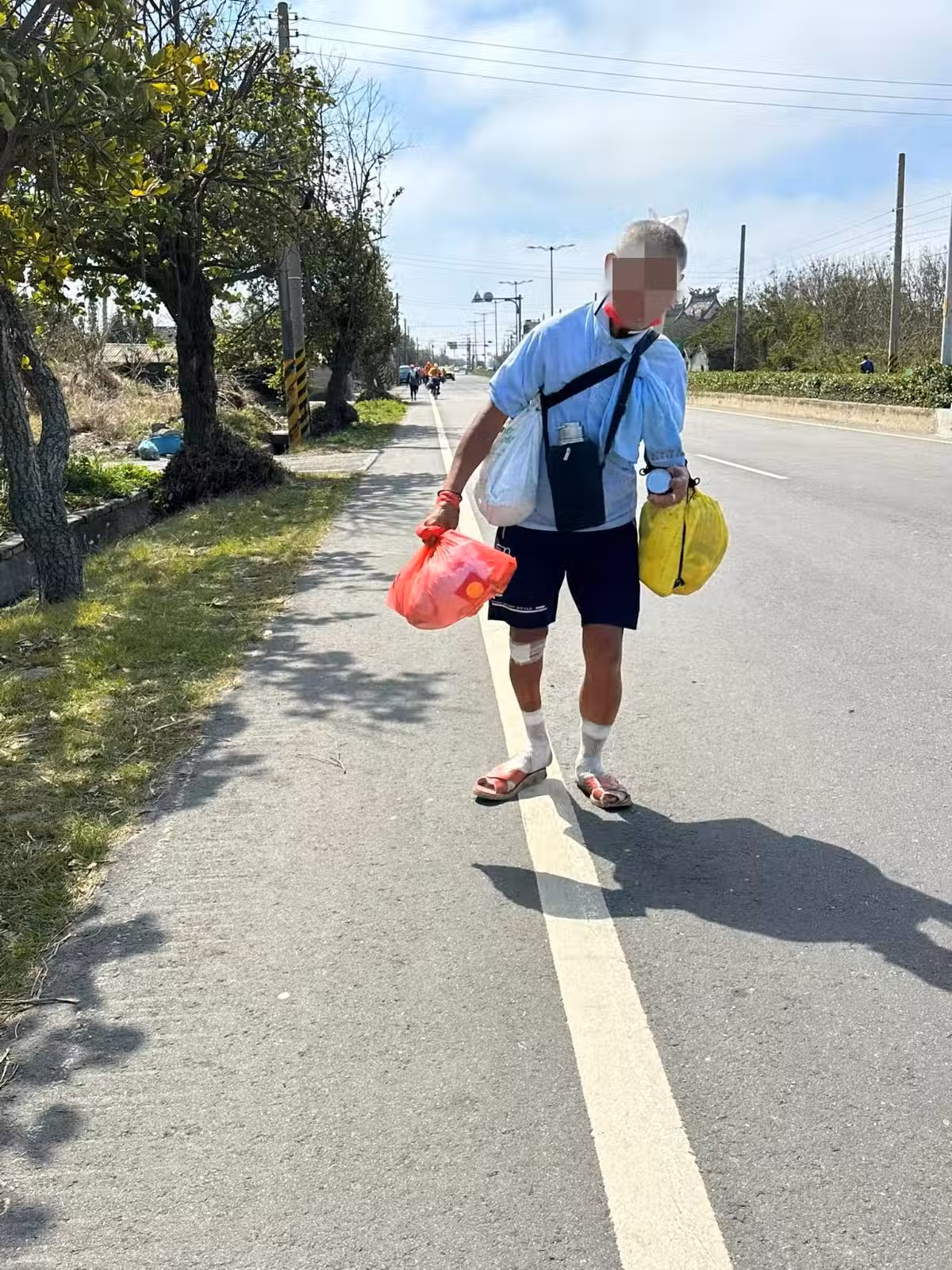 永遠跟在媽祖身後!跛腳伯紗布纏繞「孤身蹣跚走夜路」25年沒缺席 貨車司機「暖心1舉動」網全看哭