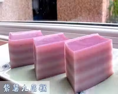 7. 倒入最後一層紫色麵糊,蒸約12分鐘。