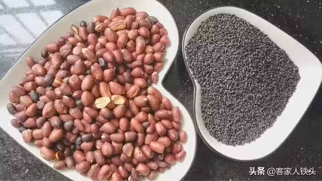 第四步:把花生和芝麻碎倒入盤中里,加入適量的白糖,喜歡吃甜的可以多倒一點點糖,然後把它攪拌均勻即可。
