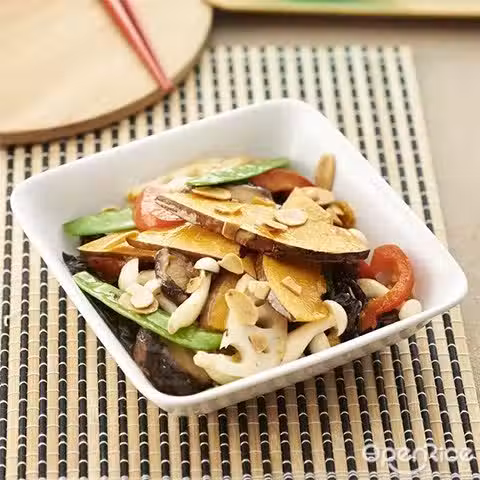 Seasoning(mixes all) | 調味料『拌勻』:1 tsp vegetarian oyster sauce |素蚝油1茶匙, 1 tsp concentrated vegetarian stock| 齋湯1茶匙, 1/2 tsp sugar | 糖1/2茶匙, 1/4 tsp salt | 鹽1/4茶匙, dash of pepper and sesame oil | 胡椒粉、麻油少許,3 tbsp water | 水3湯匙
