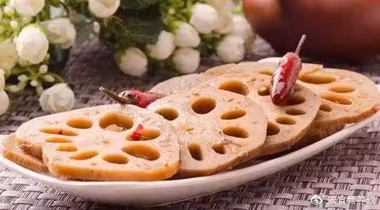 材料:蓮藕2個、白糖4湯匙、白醋4湯匙、鹽1湯匙、辣椒油3湯匙