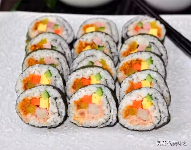 22、最後,找一把利刃,將飯卷切成適當的大小。