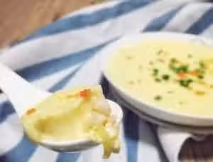 3 燒開後倒入高邊盤子,再放入蝦仁。筷子邊慢慢攪動湯,並緩慢導入雞蛋液,輕輕攪勻即可。動作緩慢點
