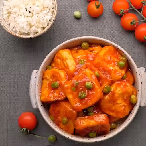 4.鍋中倒入油,倒入番茄汁,倒入炸好的豆腐翻拌均勻,即可出鍋。
