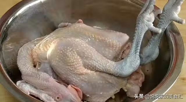 【第一步】:買雞的時候就已經讓老闆給收拾乾淨了,回來之後還需要仔細的清理沖洗乾淨,然後瀝干水分,再用剪刀或者菜刀把雞的腳趾尖去掉,控干水分之後放入盆裡面,接下來倒入兩大勺料酒,把雞的全身裡外都塗抹均勻,這樣做的目的是為了去除腥味,今天做懶人鹽焗雞,我用的是現成的鹽焗雞粉,比自己調料就要簡單方便一些,把雞粉均勻的灑在雞肉裡外塗抹均勻,一包的量剛好夠是一整雞,然後再給雞來個全身SPA,大約按摩5分鐘左右就可以了,讓雞肉充分的吸收掉料汁,然後在雞的肚子裡面放入薑片和蔥段,蓋上保鮮膜放冰箱冷藏腌制兩個小時以上,