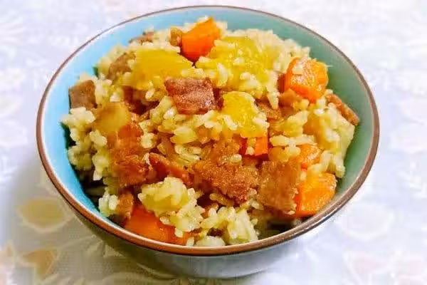 1、大米洗凈瀝干,土豆去皮切小粒用水浸泡;2、培根切小粒,胡蘿蔔去皮洗凈切小粒;3、起鍋熱油,入培根炒香,放土豆翻炒片刻;4、下入胡蘿蔔,加鹽、生抽、雞精炒勻關火;5、把大米和炒過的食材下入電飯鍋,加水,用煮飯程序燜至跳鍵,開蓋淋入香油拌勻即可。