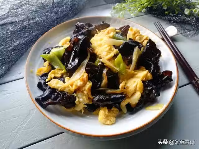 【大蔥木耳炒雞蛋】所需材料:木耳適量、雞蛋3個、大蔥1棵、油鹽適量、