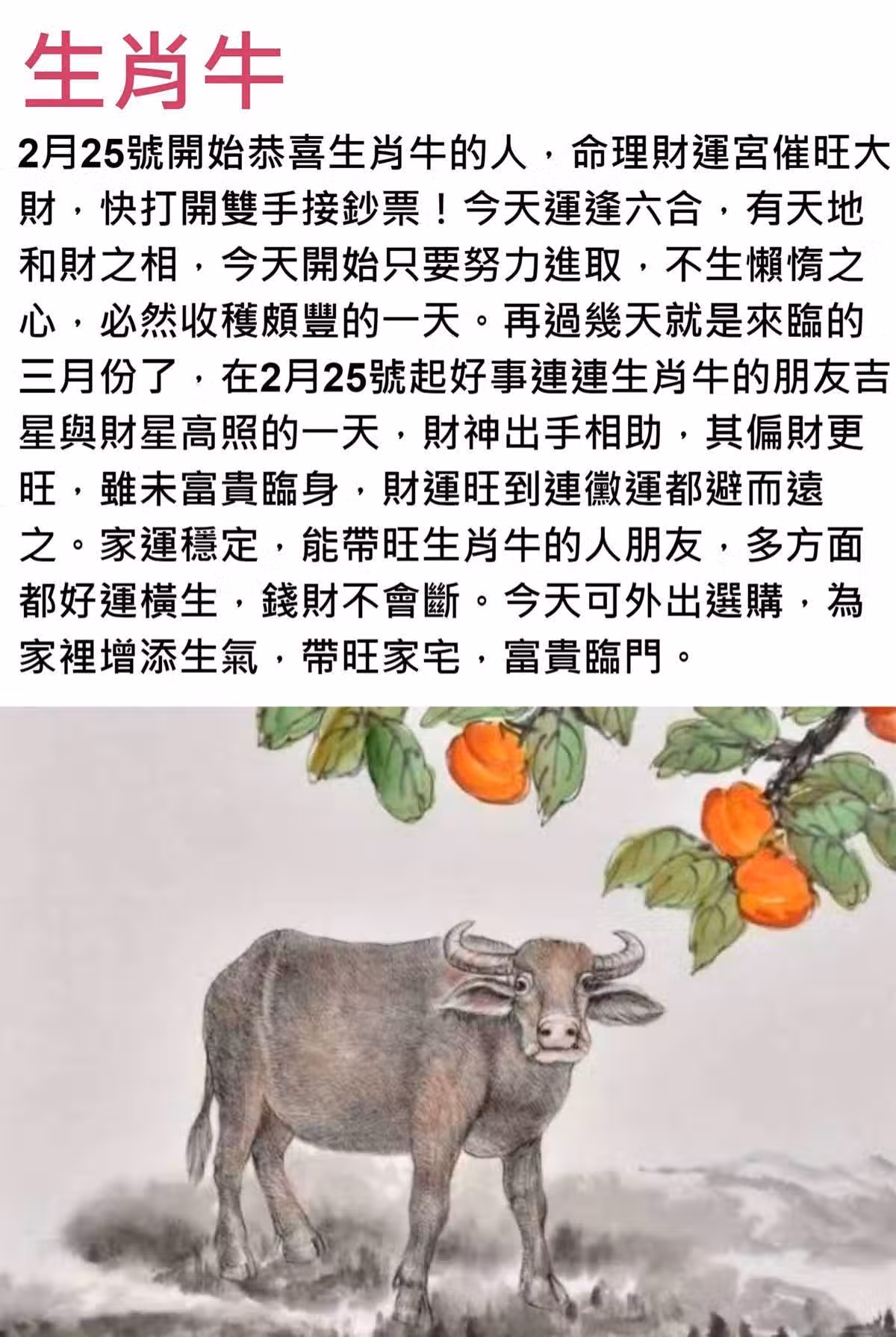 三月份了,在2月25號起好事連連生肖牛的朋友吉