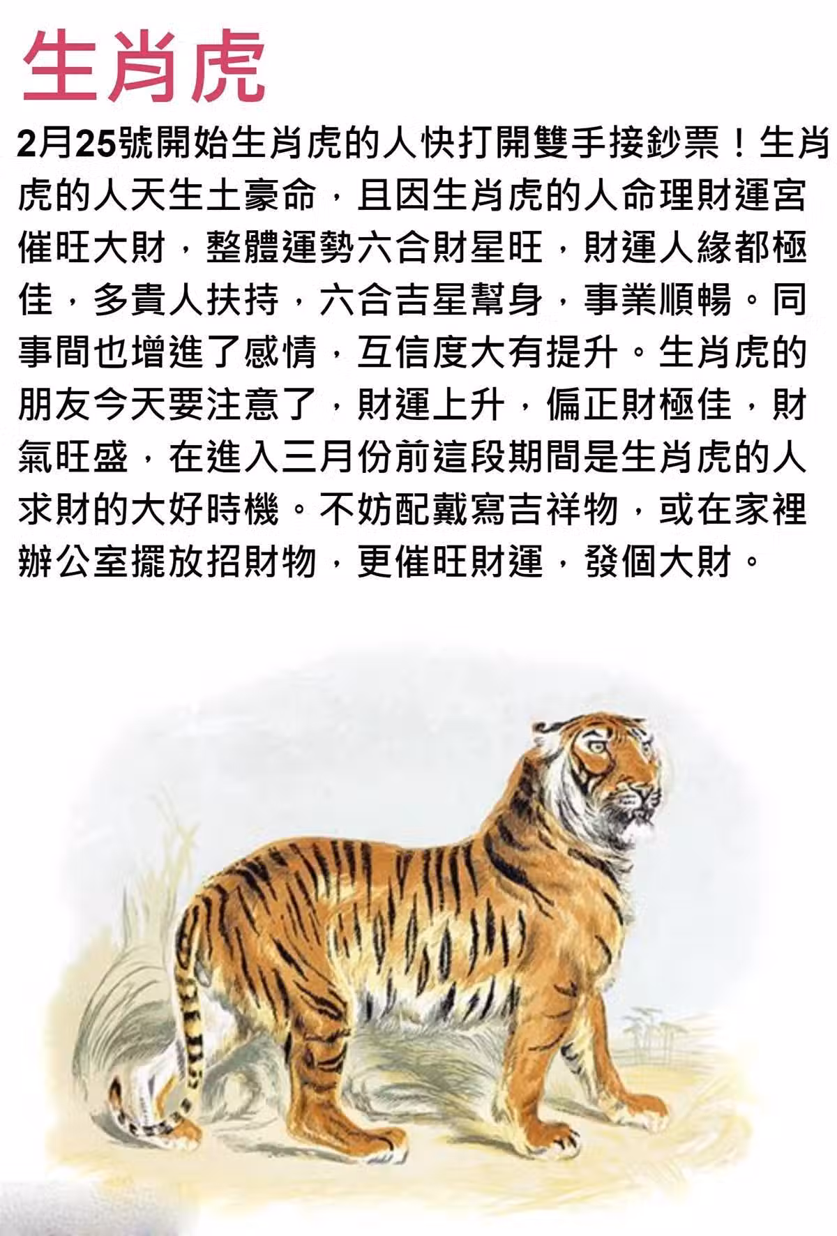 2月25號開始生肖虎的人快打開雙手接鈔票!生肖