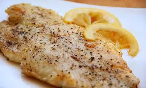 速凍龍利魚片;研磨黑胡椒;橄欖油;鮮檸檬;蔥絲;薑絲;果酒;食鹽