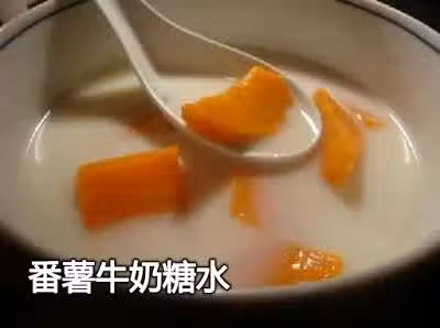 3. 煮到番薯軟爛,倒入一盒純牛奶,攪拌均勻,不用再煮,就可以吃了。