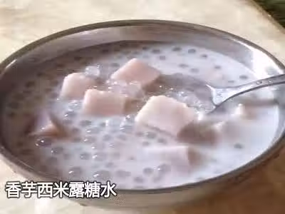 香芋1個,西米100克,冰糖100克,椰奶100毫升,清水200毫升。