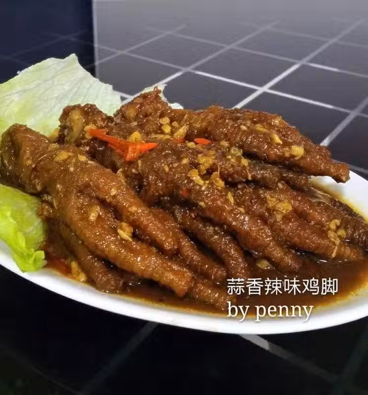 25隻雞腳炸香,150g蒜頭拍爛去衣,15條小辣椒去籽,1200ml水,適量粟粉水。