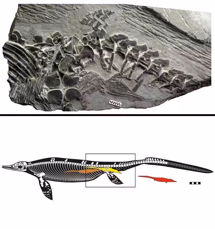 分娩對任何一種生物都是一個危險的過程,不僅僅是人類,恐龍也不例外,因為很多事情都可能會發生,上圖中是在2011年,在中國馬家山發現的具有近億年歷史潮母龍化石。這只母龍體內有3隻小恐龍,當時它正在分娩,第一隻恐龍的頭都已經露出來了,可是不知道發生了什麼不幸的事情發生了,這一瞬間被定格了上億年。