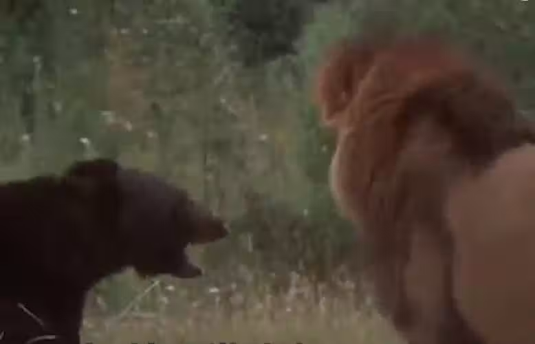 本想要上前偷襲一番,它悄悄地走到黑熊的身邊,沒想到黑熊突然轉身,老虎看到黑熊強壯的樣子,直接轉身就跑,原來百獸之王也有害怕的時候,但是有一隻獅子卻不知天高地厚。