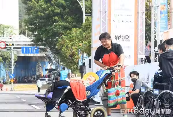 後來又有朋友約她前往旗津參加黑沙路跑,天氣舒適涼爽,每當吹到風,小比就會揮動雙手開心地笑著,「我如果去參加跑步,他可以出來接觸人群,還可以吹到風,我想要帶他去做這些事情,只要他開心就好了。」