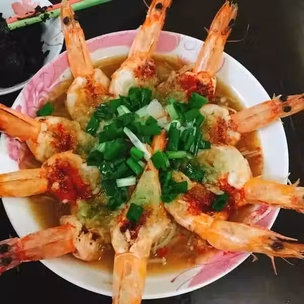 用料:海蝦10隻、綠豆粉絲80克、蒜蓉50克、香蔥碎15克、生抽2大匙、細鹽1/4小匙、砂糖2小匙、白鬍椒粉1/4小匙、高湯(清水)2大匙