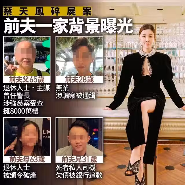 香港名媛蔡天鳳2月下旬遭前夫一家謀殺及碎屍,遇害後又被其藏在大埔龍尾村的地下室,作案手法殘忍,震驚世人。