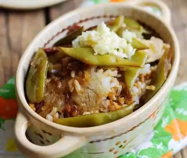 將扁豆燜面的做法用到燜飯上,效果也非常棒,鍋底的鍋巴也有了調料的味道,大愛!