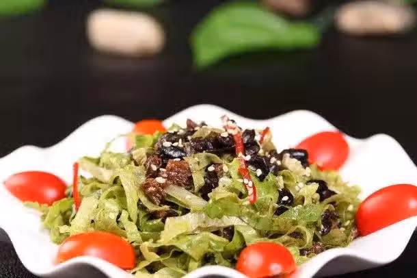 食材:生菜2大顆、豆豉鯪魚2大勺、油1大勺、蒜末1小勺、味精適量、鹽適量。