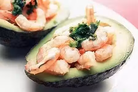 牛油果2個、蝦仁450克、黃瓜1根、沙拉