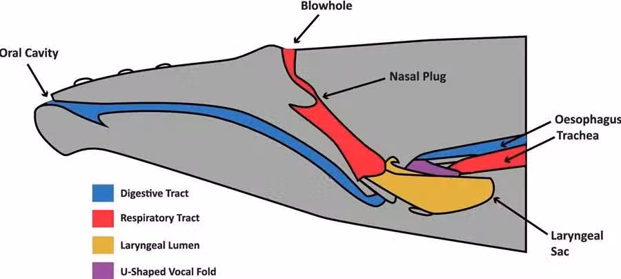 用堵這個字還不夠準確,被呼吸孔夾住更準確。因為呼吸孔有一組強健的肌肉,這組肌肉可以保證鯨豚在潛水時,鼻孔完全閉合。所以即便是滑溜溜的比目魚,也沒能逃出這個小口,因為被夾住了。