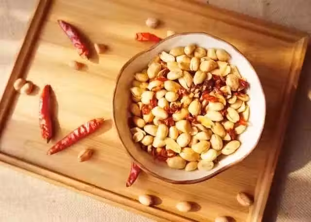 花生100克,辣椒干20個,花椒2克,鹽1小匙,糖1小匙。